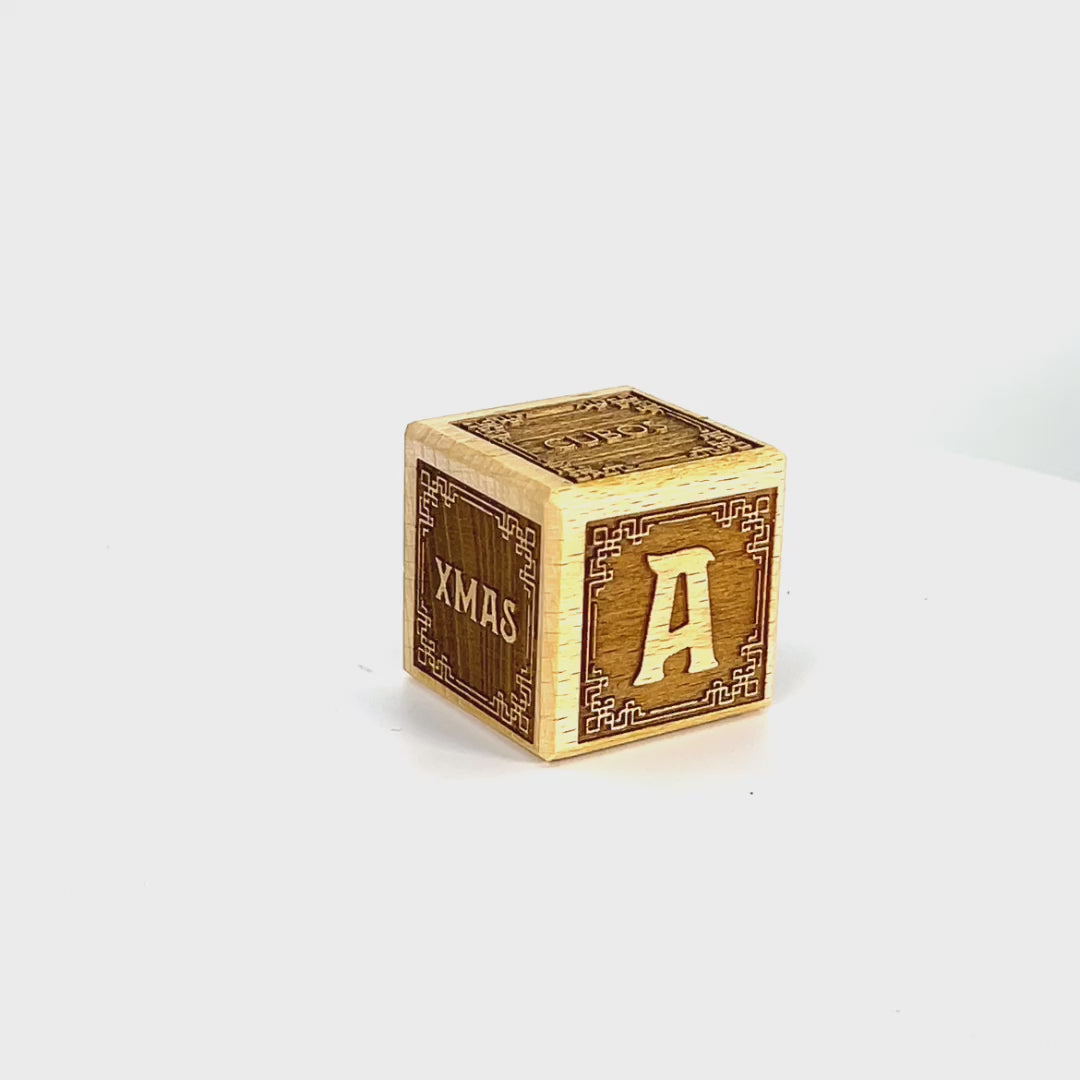 Special Holiday-Inspired Blocks: This exclusive set features blocks with a delightful twist. One side displays the number "1st" to mark the special occasion of Christmas, while the opposite side is adorned with "XMAS" to capture the holiday cheer. On another side, you'll find charming illustrations of animals, adding a touch of Christmas magic. But that's not all! The final side features a sprig of mistletoe, symbolizing the season's joy and tradition, with a little hook to decorate on the Christmas tree.